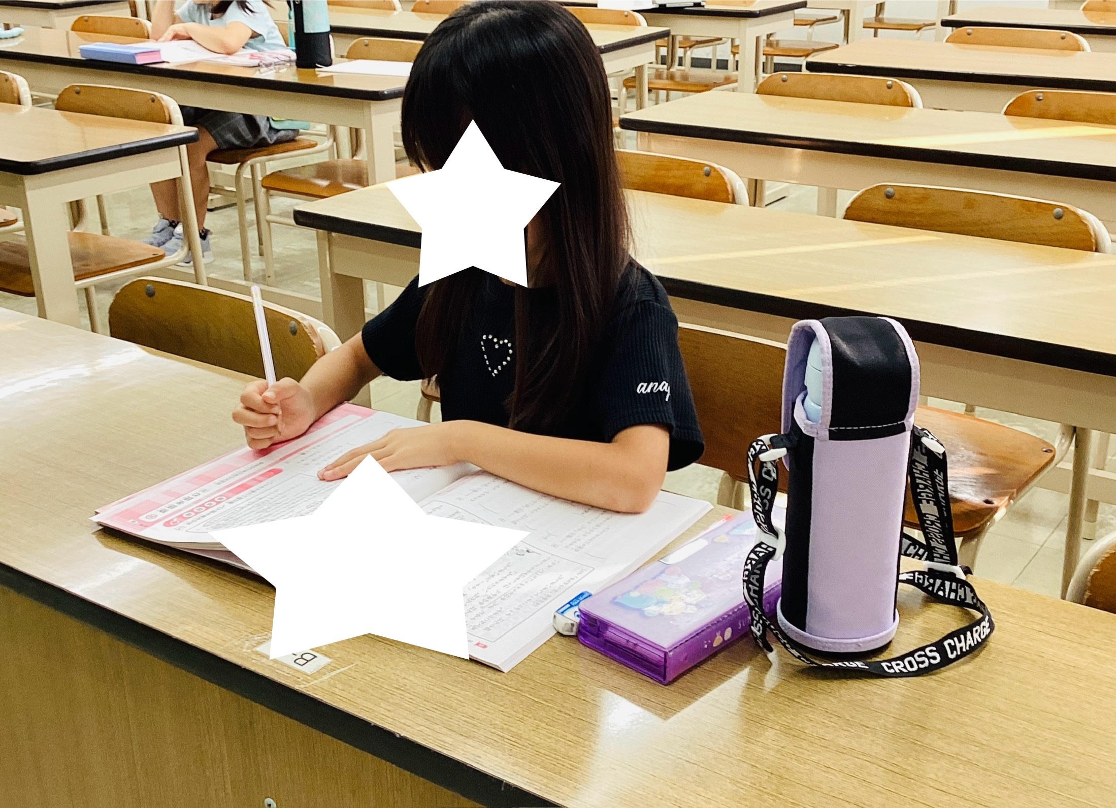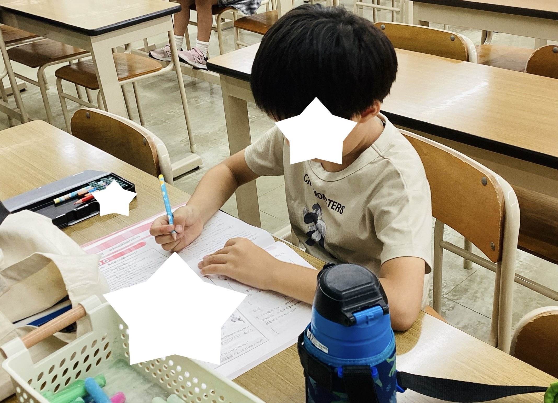 宿題が早く終わった子は➕αでお家から持ってきた漢字や英語などのドリルに挑戦したりしています。