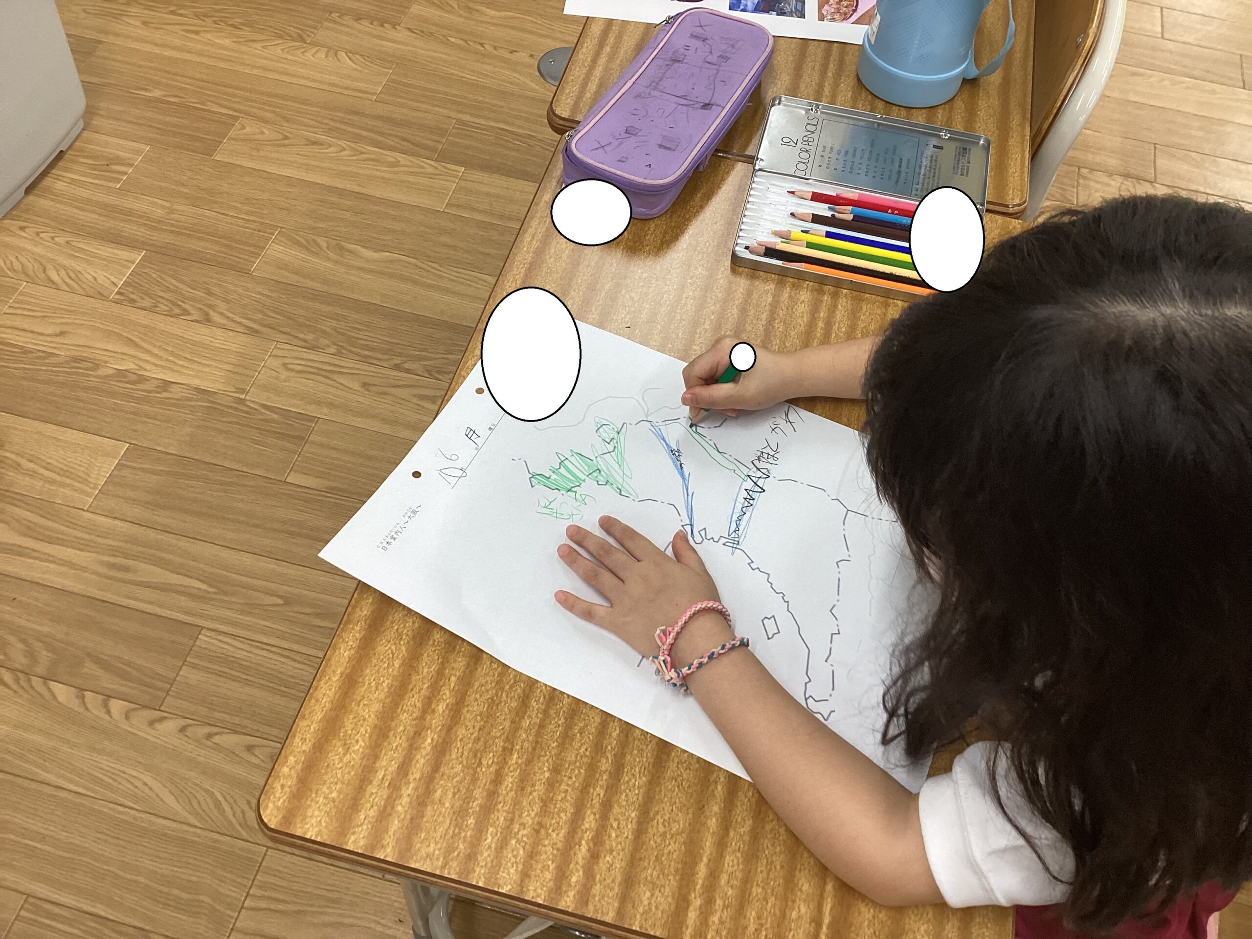 そして、白地図を使って山脈や川、有名な建物の場所などを書き込んでいきます。