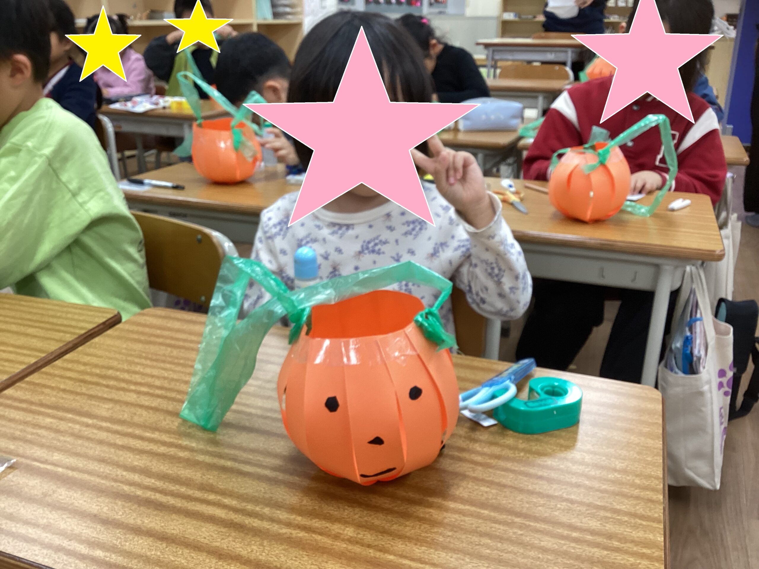 水曜日は「ハロウィン」の制作でした! かぼちゃの入れ物を作りました!みんなそれぞれ、可愛い顔も作成してくれました☆