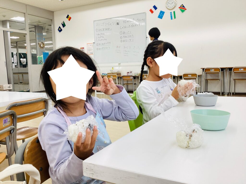 そして前回の年長体験会『おこめ〜おにぎりづくり体験〜』の様子をご紹介します。お米を観察し、おにぎりづくりを行いました。