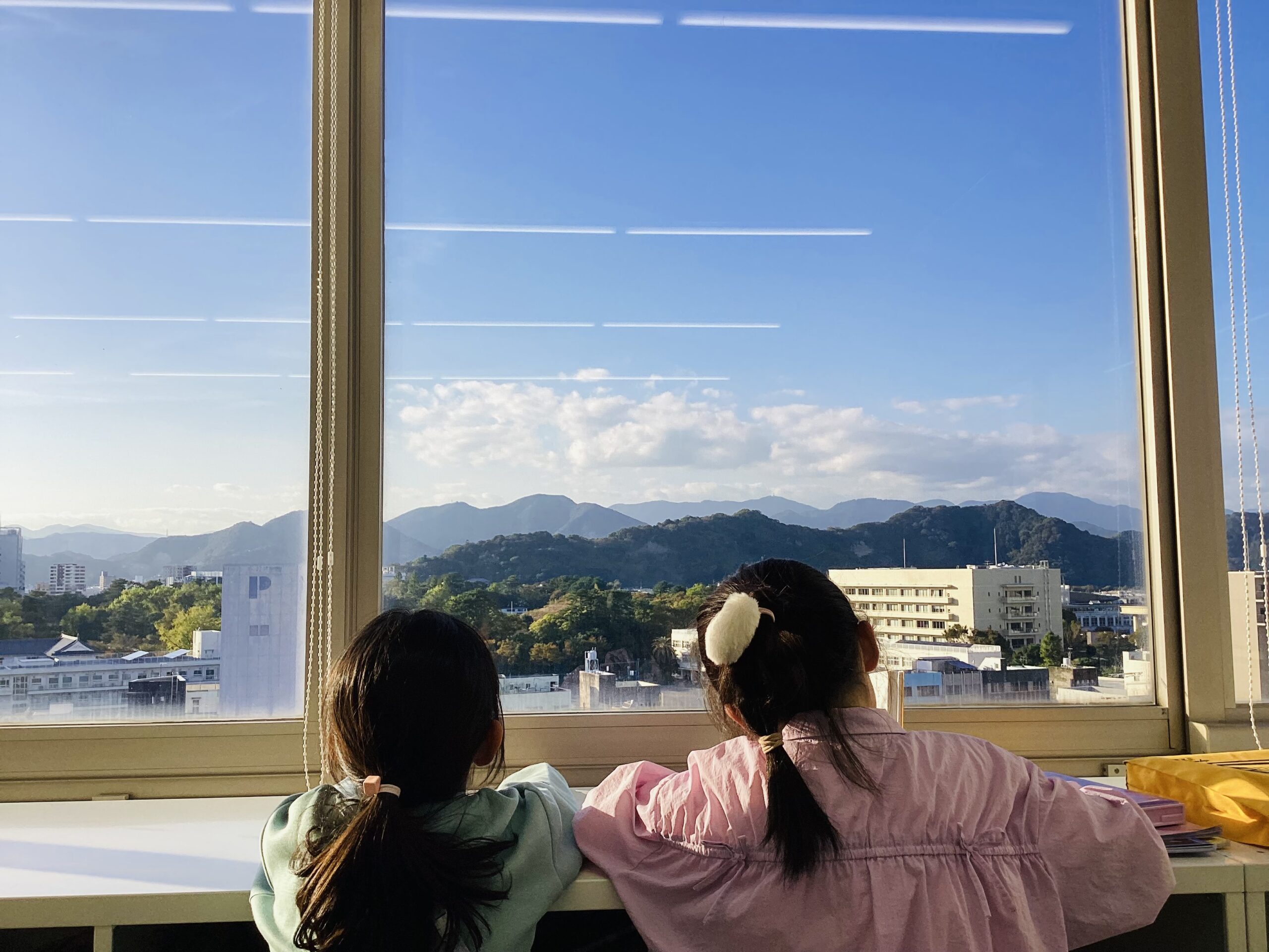 秀英KIDSルームから望む夕陽がとっても綺麗で、息抜きに空を眺める姿がみられます。