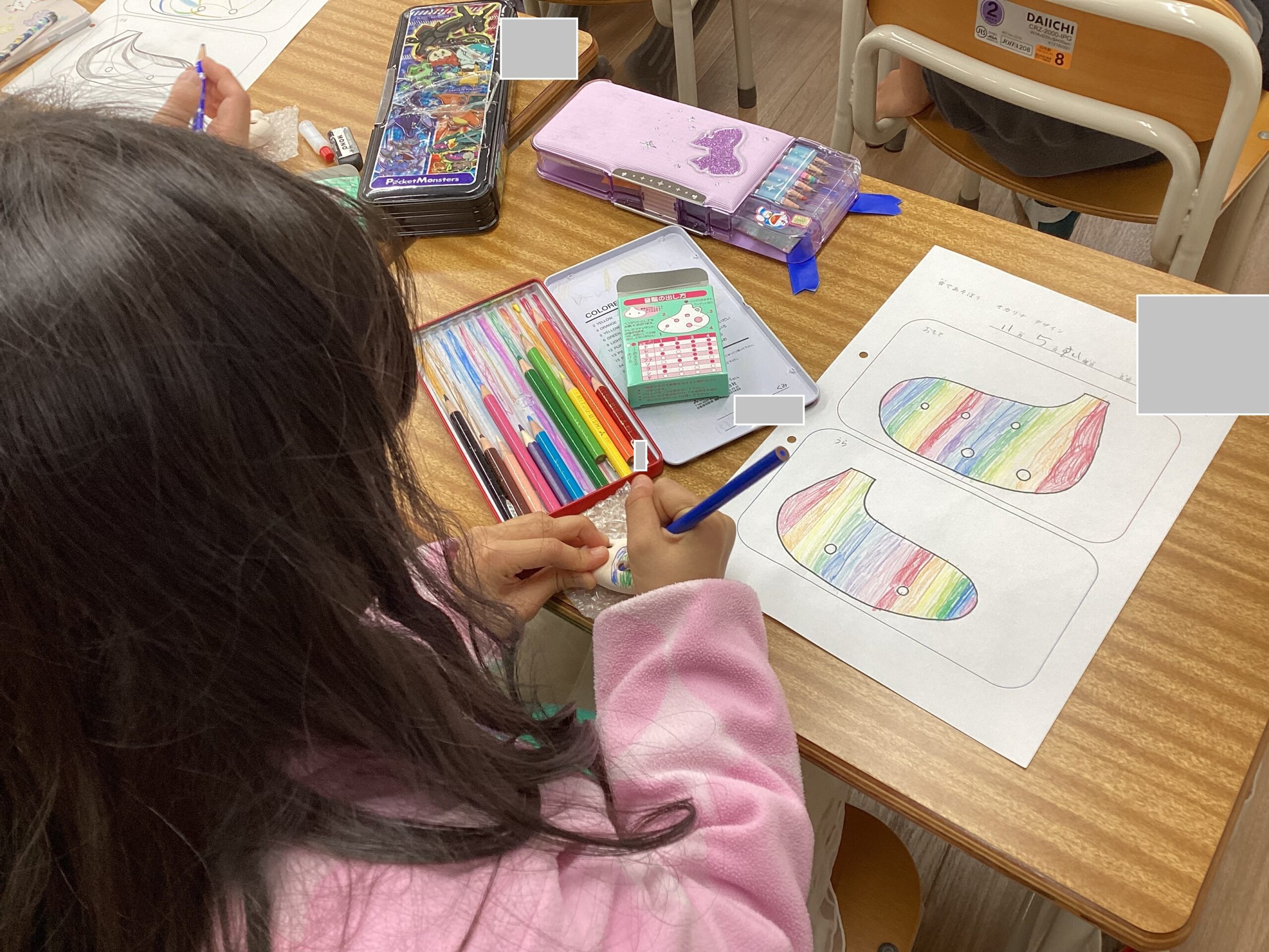 色えんぴつで塗ったあと、最後はニスで仕上げ