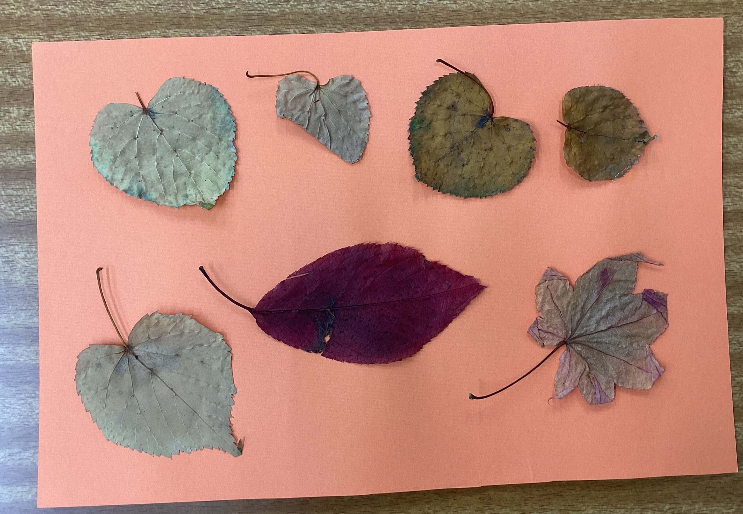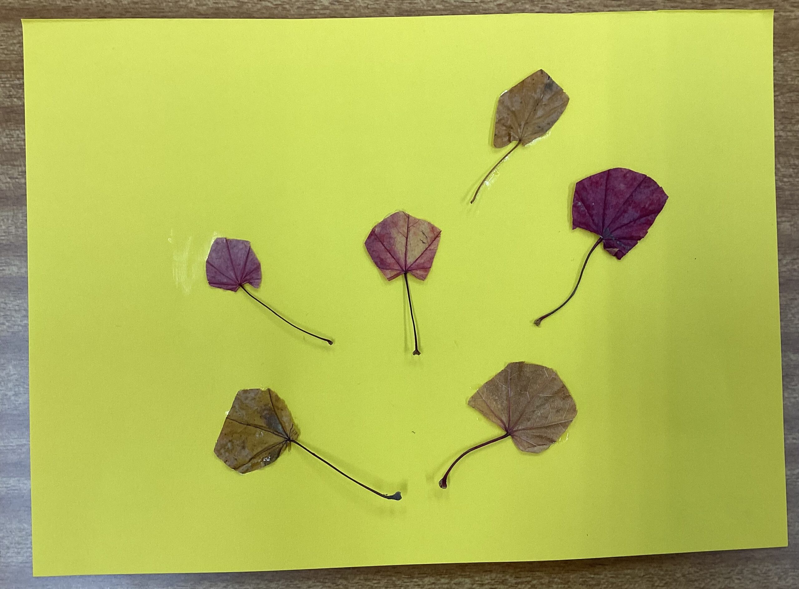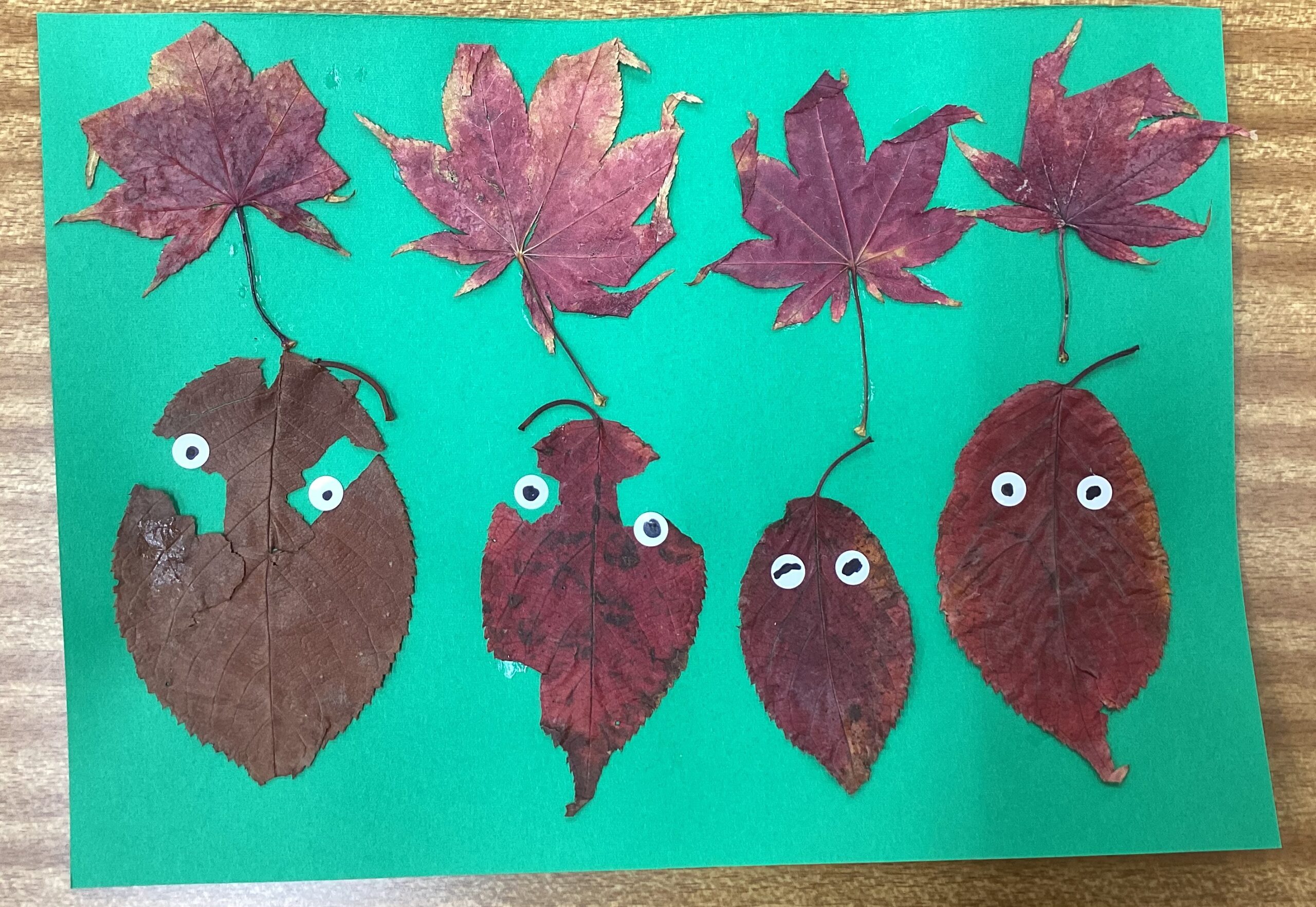 そして、2週目は自分で拾った葉っぱを使ってアート作品に仕上げていきました!!