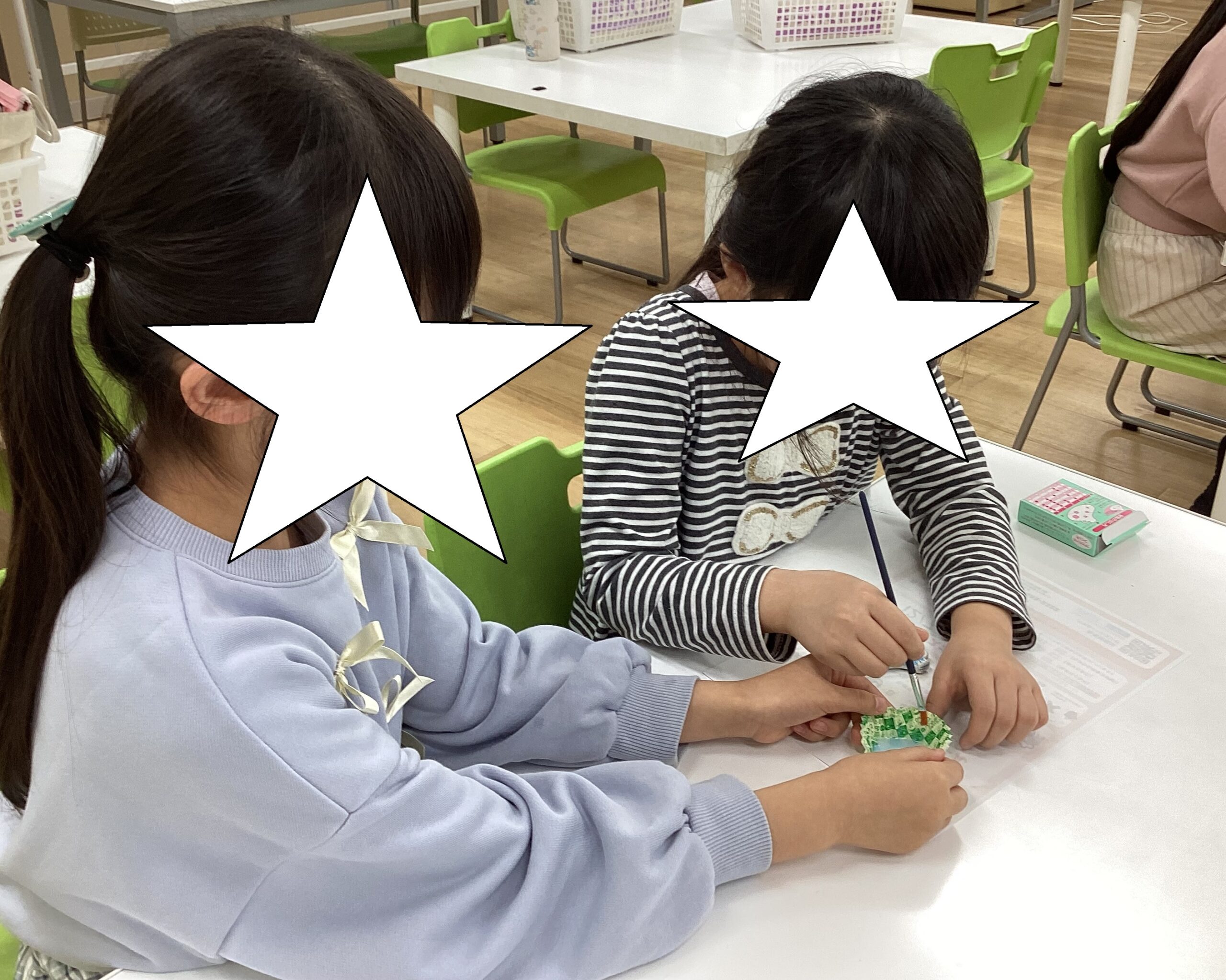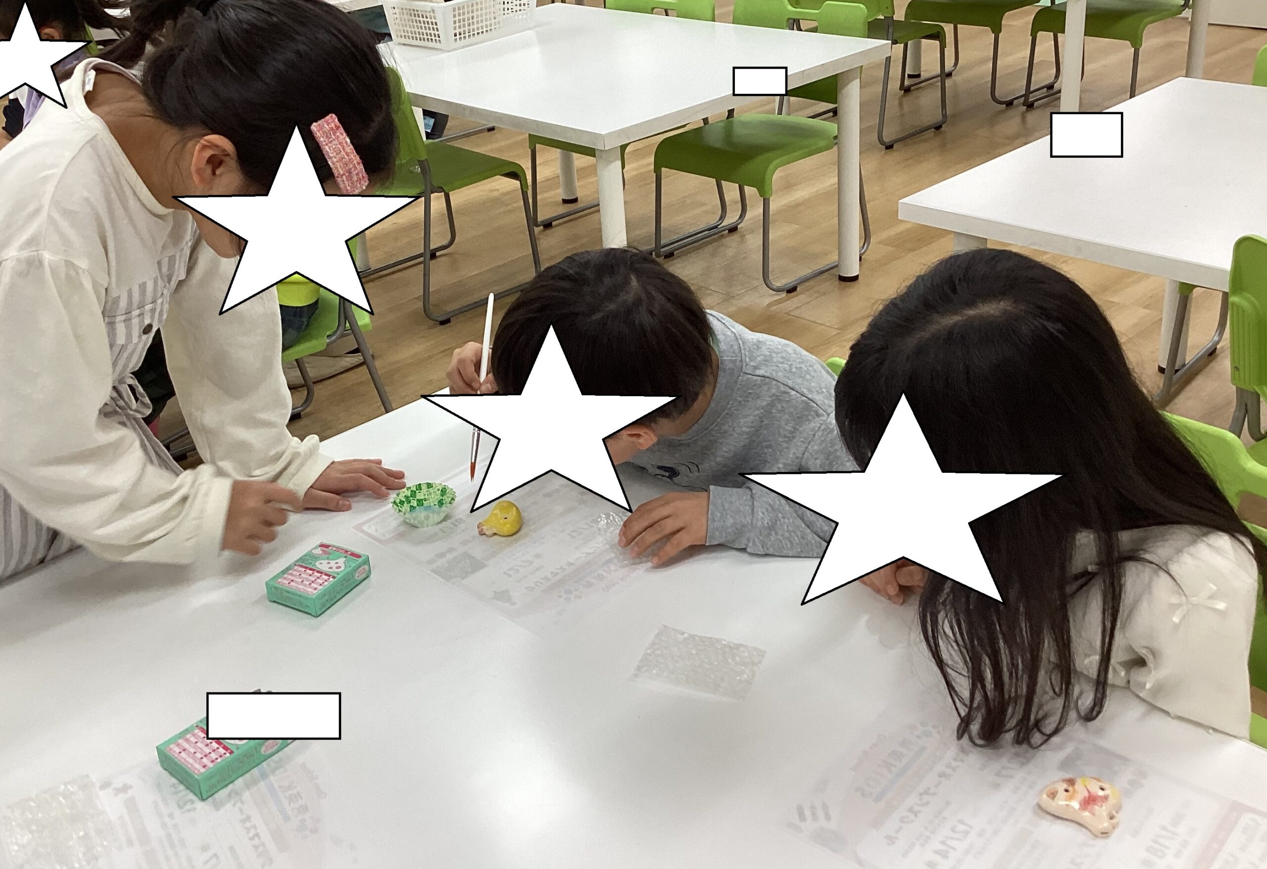 「図工でもやったことある!」という子もいれば、「初めて…」という子もいて反応も人それぞれでした。
