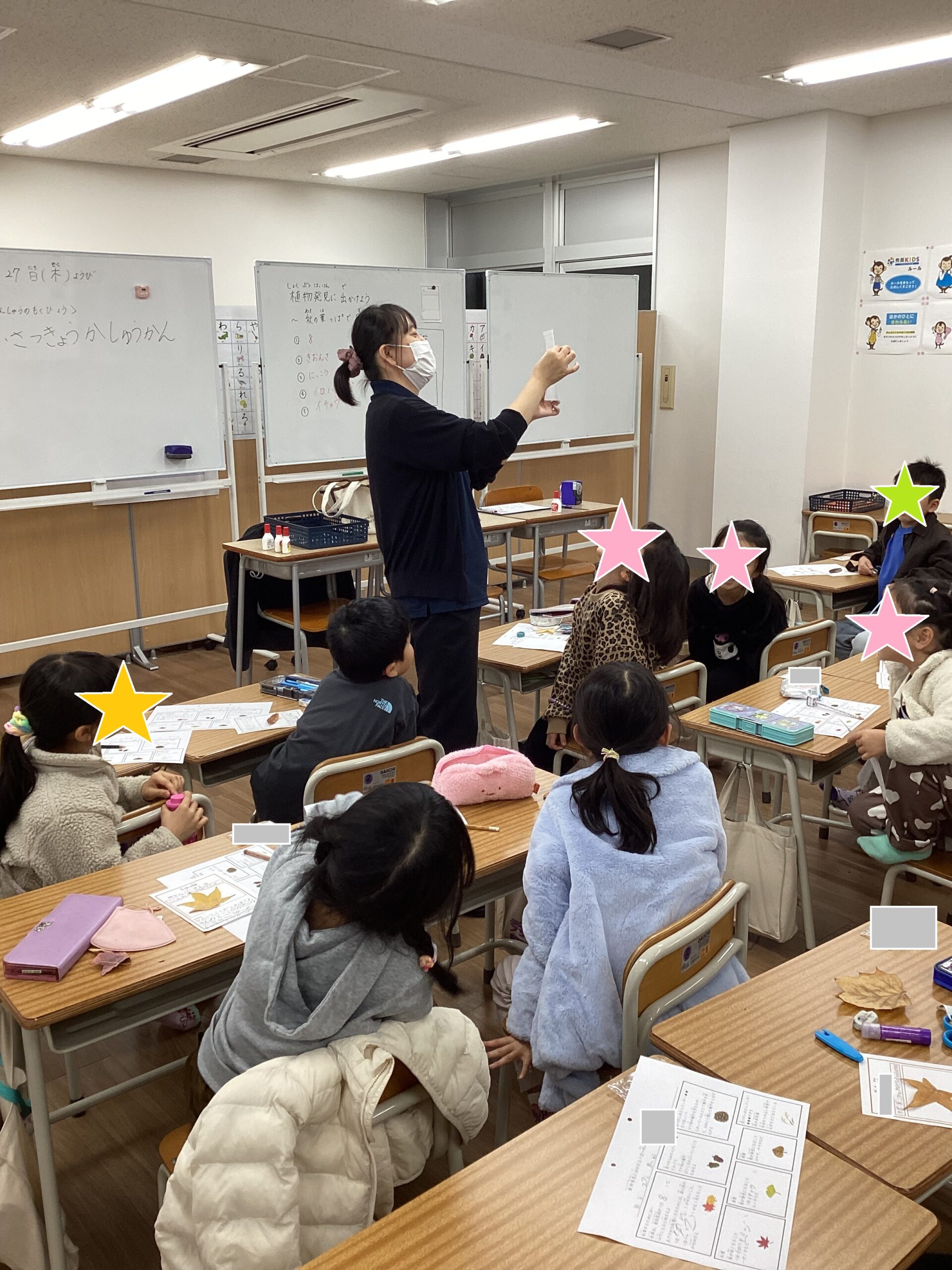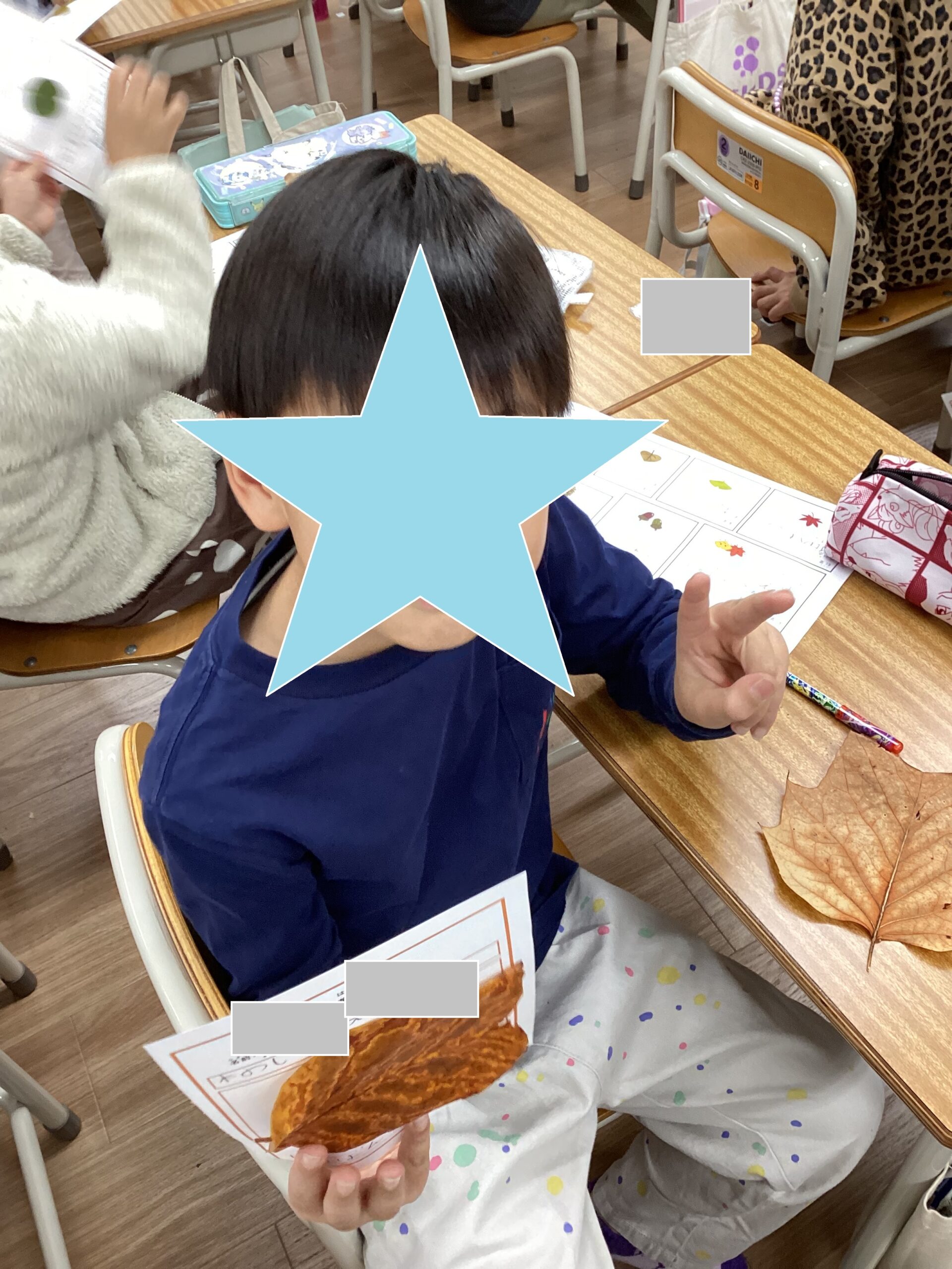 まずは、紅葉について学び、そのあと、公園に行って、秋の葉っぱを観察しました!