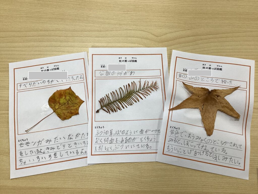 手のひらみたいな葉っぱだったり、動物にたとえてくれた子どももいました!