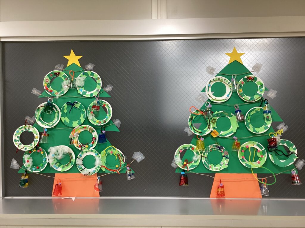 前に作ったクリスマスベルと一緒に校舎に飾りました☆