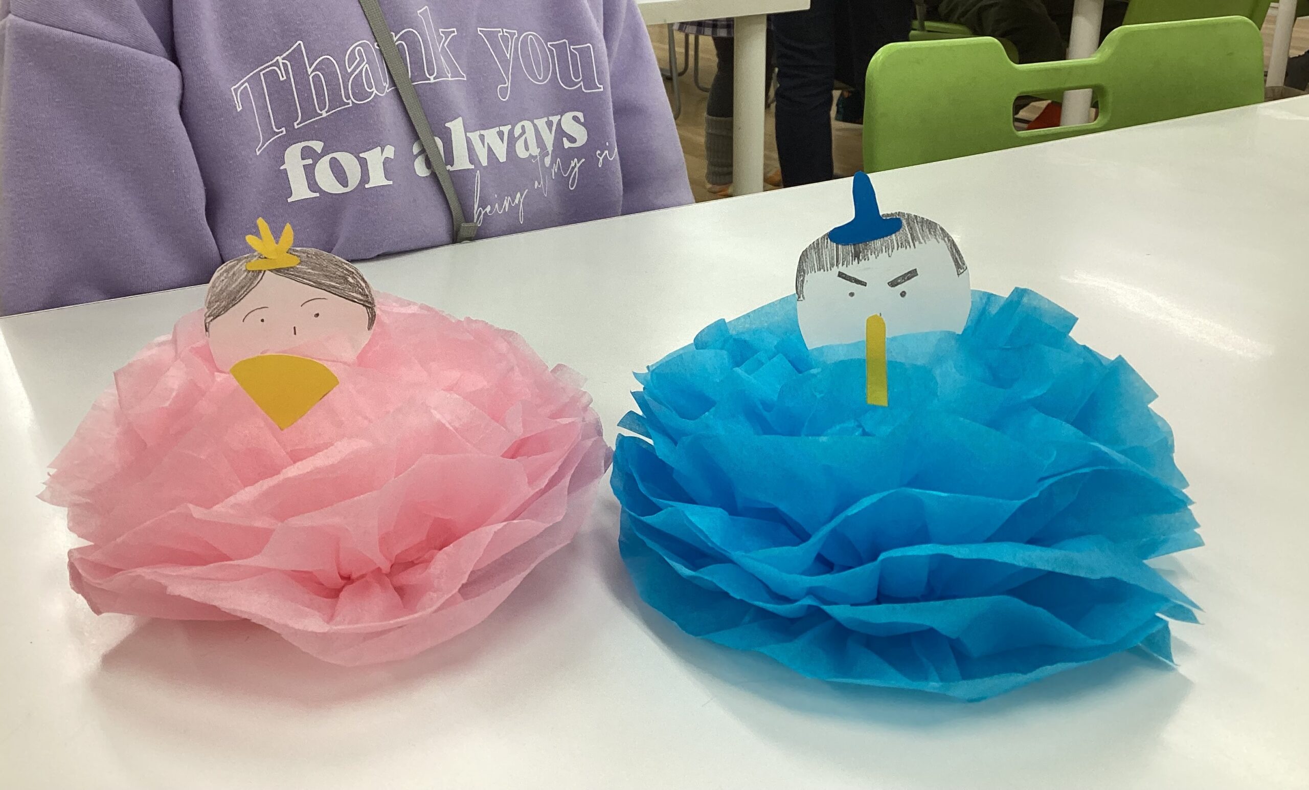 それぞれ自由に表情をつけてもらい、個性豊かなひな人形が完成しましたよ😊
