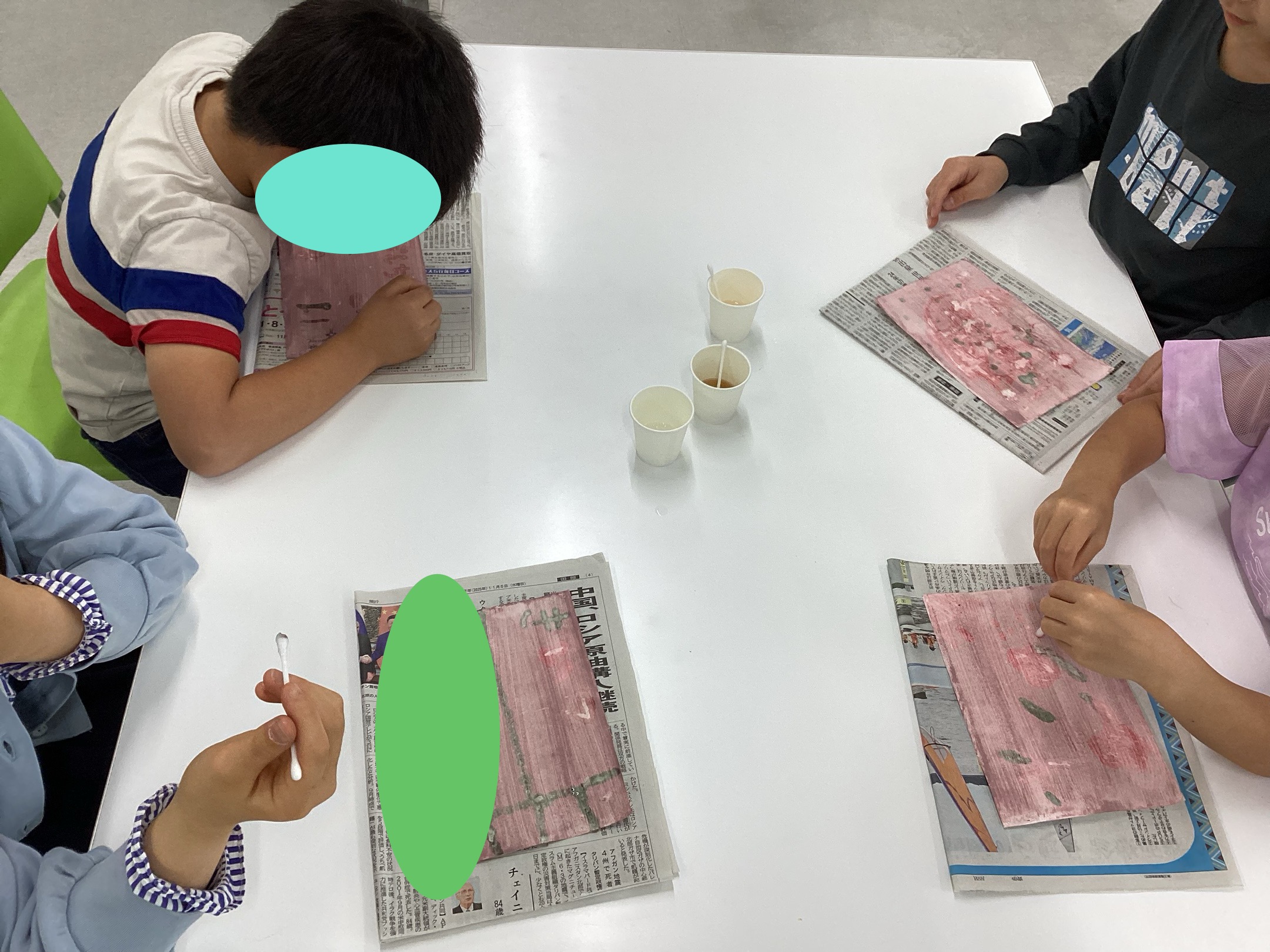 子どもたちは授業で色が変わる仕組みを学んでから、いざ実験!