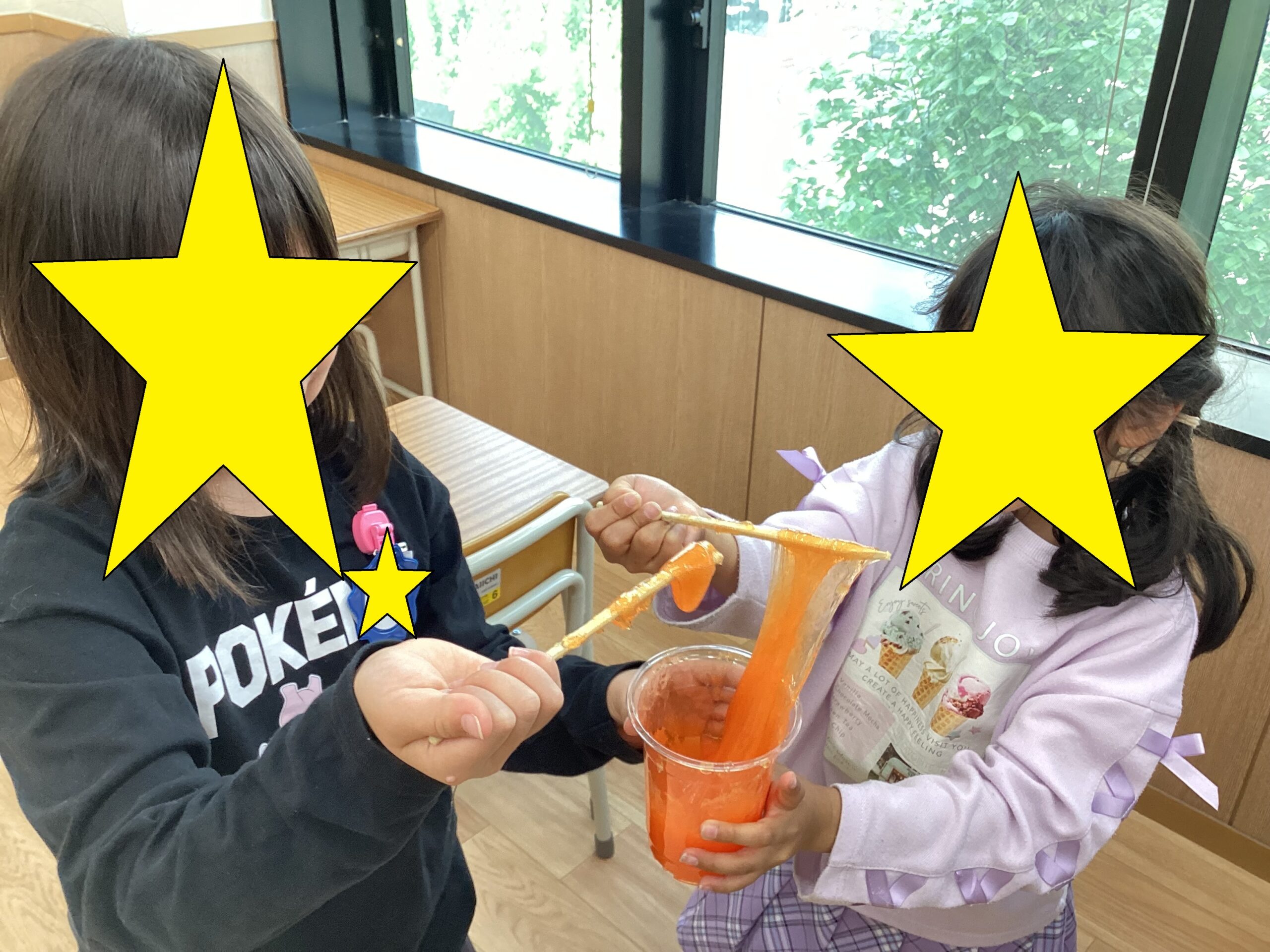 水・せんたくのり・ホウ砂水をこねこね。ホウ砂水を足しながら硬さを調整しながらこねこね。