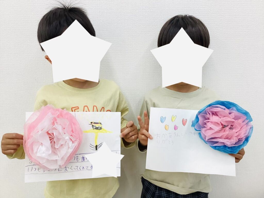 5月10日の母の日に向けて、フラワーペーパーを使ったカーネーションとメッセージカードの制作を行いました🌸